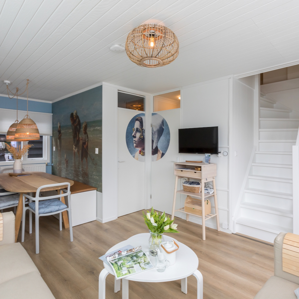 Dieses Ferienhaus am Meer ist im gleichen schönen Strandstil eingerichtet wie Nummer 49, aber geräumiger. Ideal, um deinen Urlaub mit noch mehr Menschen (und deinem treuen Vierbeiner) zu genießen. Mehr Platz auch für schöne zeeländische Details. Die „Kinder des Meeres“ zum Beispiel sind ein echter Blickfang am großen Esstisch. Überall wirst du von gemütlichen, aber auch praktischen Details überrascht, die deinen Urlaub in Bert aan Zee zu einem Fest machen.