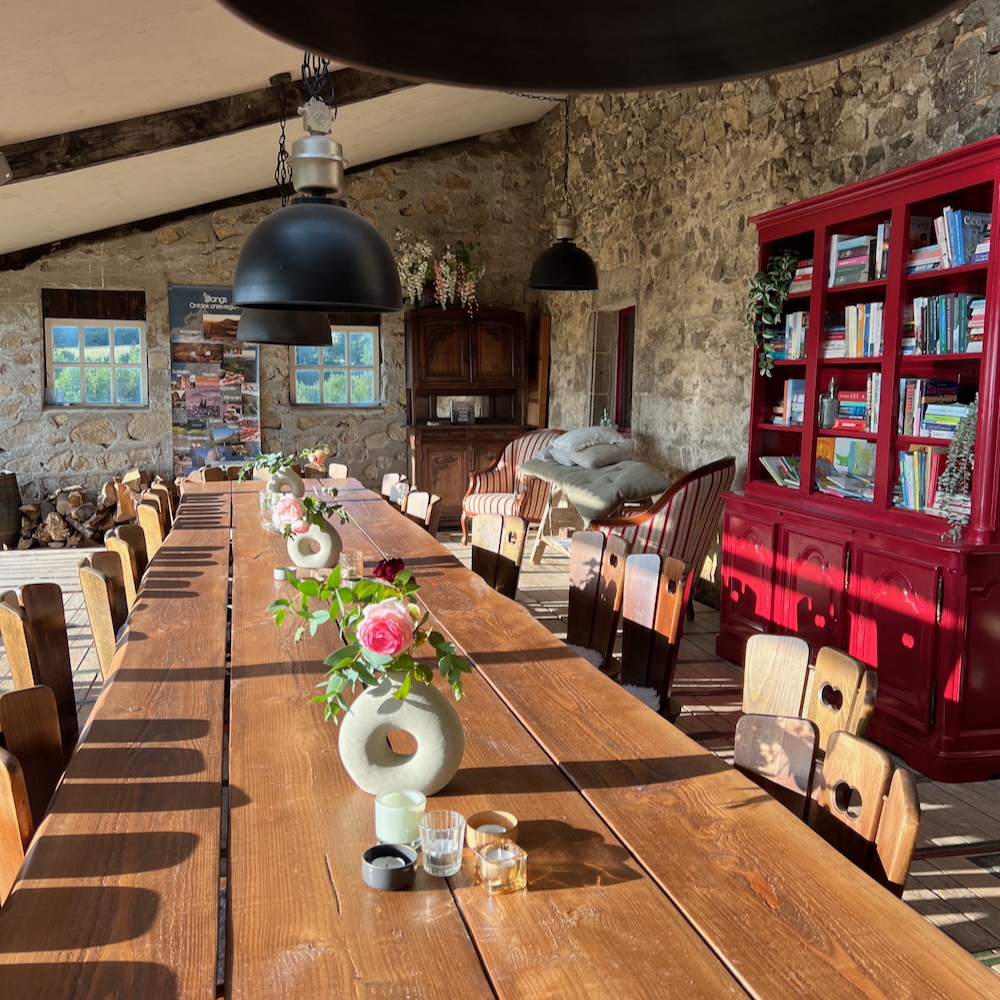 Das 200 Jahre alte Bauernhaus wurde umgebaut und beherbergt nun drei stimmungsvolle Gîtes (2-6 Personen). Dekoriert und eingerichtet mit Brocante. Vom Esstisch bis zum Gebetsstuhl, vom antiken Nachttisch bis zum schönen Sideboard und anderen kleinen Schnickschnack. Alles zusammen gefunden und von Christine renoviert.