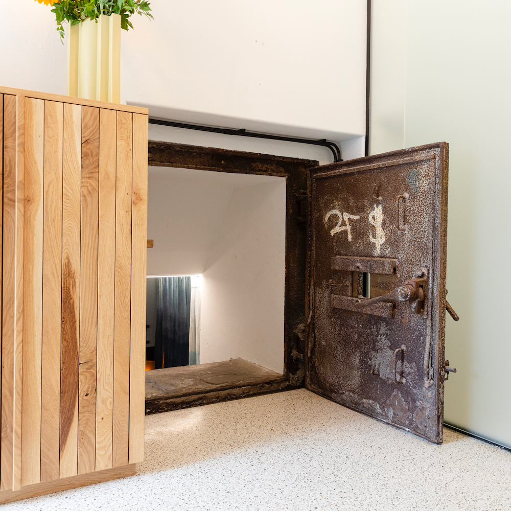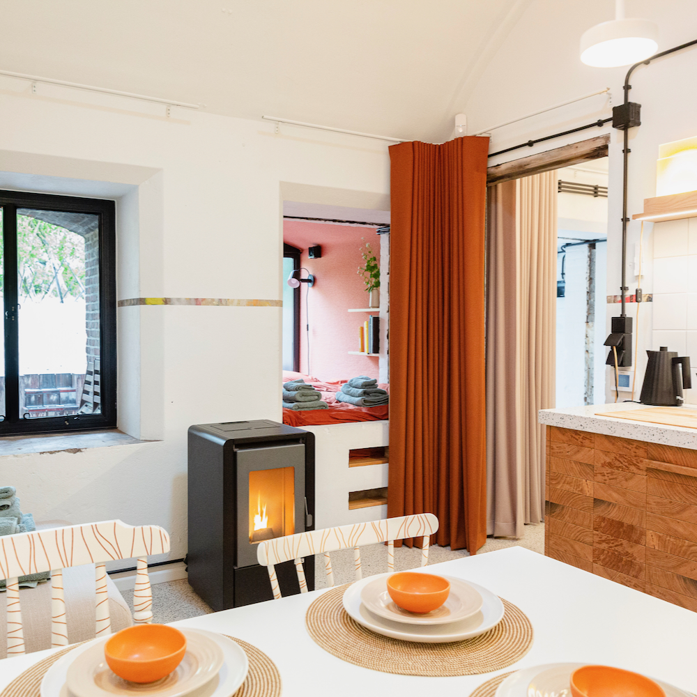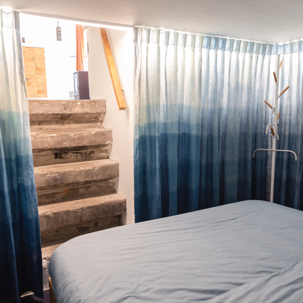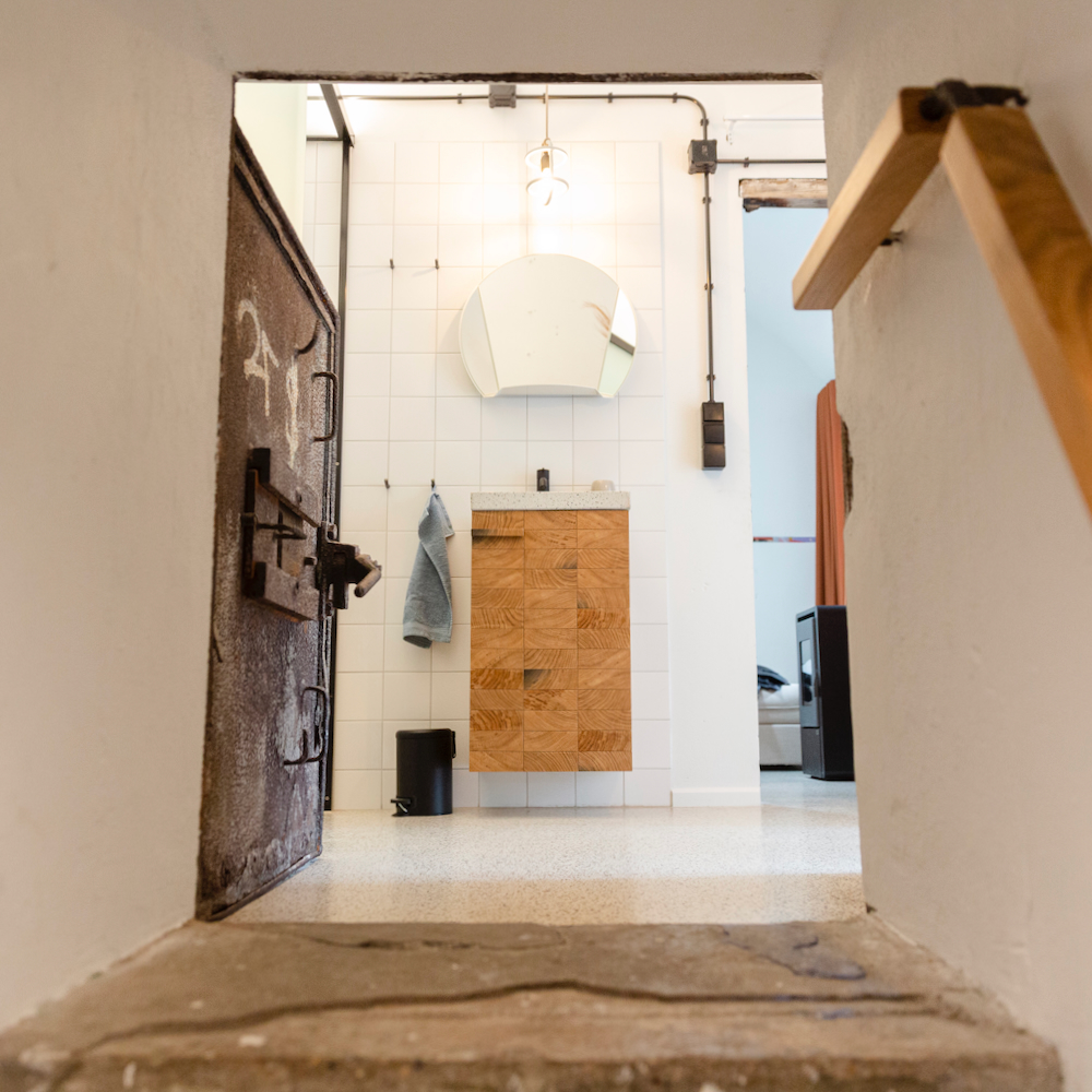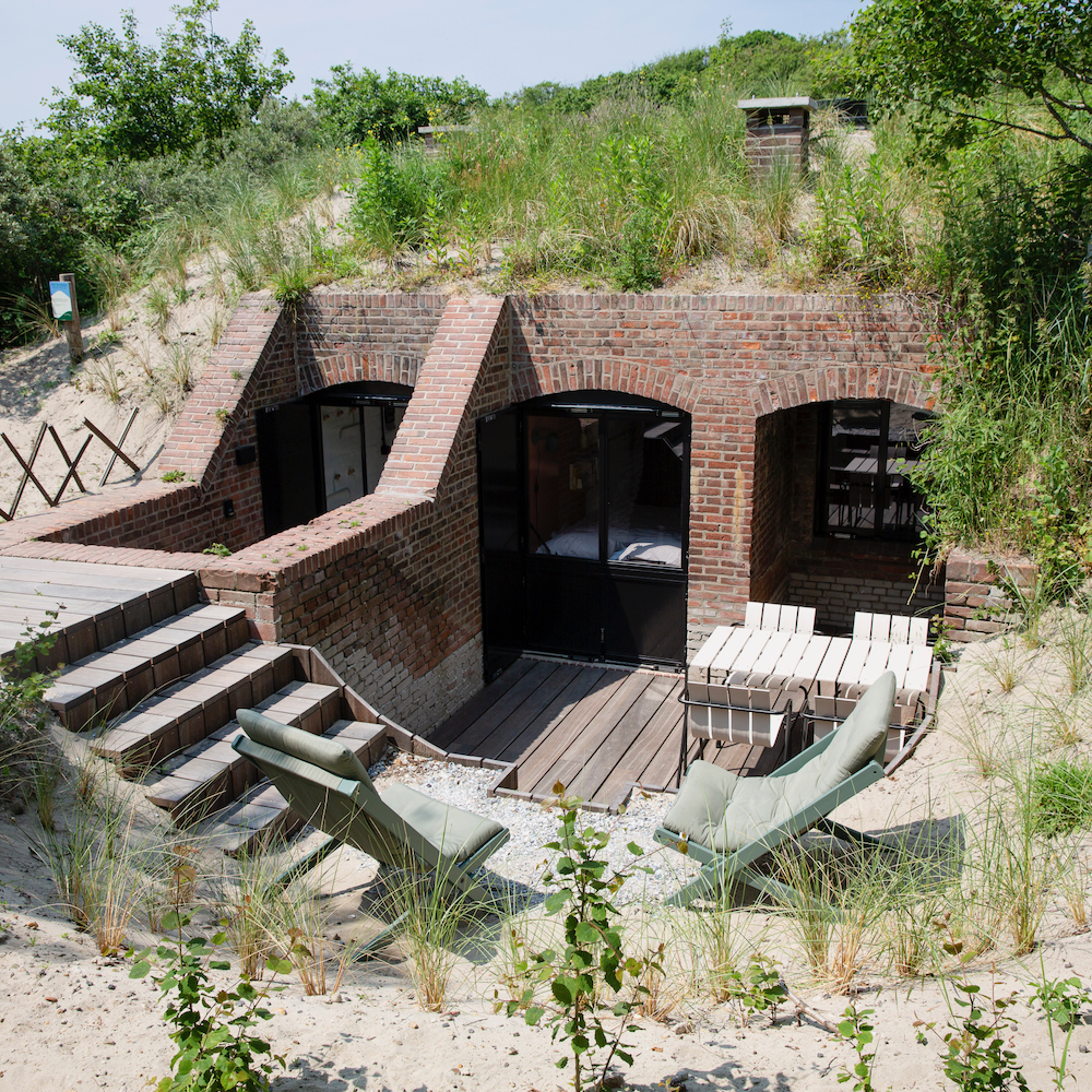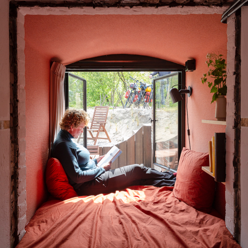 Der erste umgestaltete Bunker von Cocondo ist ein ehemaliger deutscher Telefonbunker aus dem Jahr 1943. Jetzt ist er ein außergewöhnliches Ferienhaus für zwei Erwachsene und zwei Kinder. Der Bunker wurde mit Sorgfalt und unter Verwendung nachhaltiger und ökologischer Materialien renoviert. Die Inneneinrichtung ist gut durchdacht. In einem der Fenster steht zum Beispiel ein Kastenbett. Außerdem gibt es ein Wohnzimmer, eine Küche, ein Badezimmer und die ehemalige Telefonzentrale ist jetzt ein Schlafzimmer mit Doppelbett. Kompakt, praktisch und besonders.