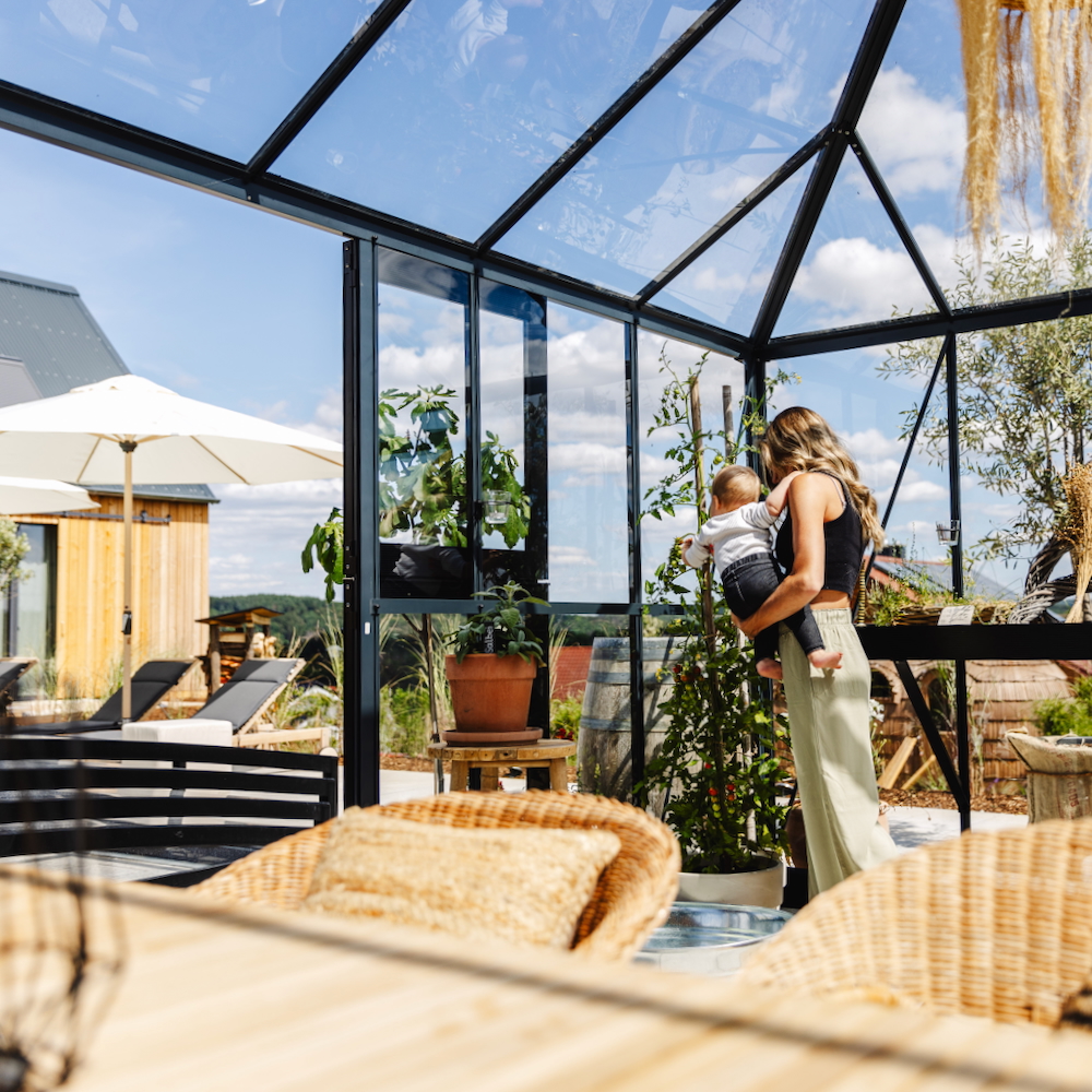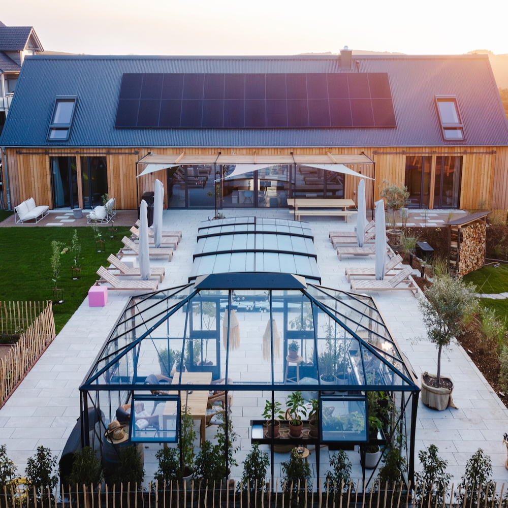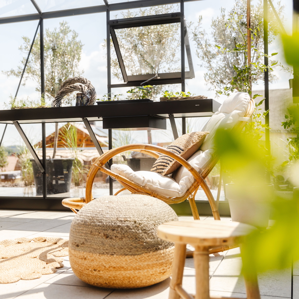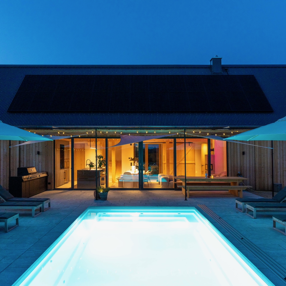 Im Farmhaus wohnst und schläfst du großzügig: Es ist geräumig, komfortabel und gut eingerichtet. Die sechs modularen Schlafzimmer können flexibel eingerichtet werden und bieten Platz für bis zu 14 Gäste. Ein Schlafzimmer mit Bad ist rollstuhlgerecht; ein großer Teil des Erdgeschosses und des Gartens sind ebenfalls barrierefrei. Die Schlafzimmer und drei Bäder umgeben einen offenen Wohnbereich mit Küche und langem Esstisch. Die hotelgerechte Küche (Dampfgarer, großer Kühlschrank, Weinkühler und umfangreiche Ausstattung) macht das gemeinsame Kochen zu einem Fest. Fußbodenheizung und Klimaanlage runden die Ausstattung ab. Im Inneren gibt es auch ein privates Kino (große Leinwand, guter Sound) und einen Mehrzweckraum für Yoga, Workout oder zum Arbeiten. Du kommst mit Kindern nach Das Farmhaus? Es gibt Kinderbetten, Babybetten, Hochstühle, Treppengitter und viele Spielsachen für Groß und Klein. Es wurde wirklich an alles gedacht. Bis hin zu einer Indoor Rutsche, einer Kletterwand und Spielgeräten im Garten. Draußen findest du eine Außenküche mit großem Grill, Lounge-Ecken, und ein Gewächshaus mit Sitzgelegenheiten inmitten von Kräutern und Gemüse. Du hast deine eigene Sauna (IgluCraft, mit Ruhebereich und Dusche), einen Whirlpool, einen (überdachten) Swimmingpool mit Liegestühlen, Sonnenschirmen und eine Feuerstelle für lange Abende. Kannst du dir vorstellen, es zu genießen?