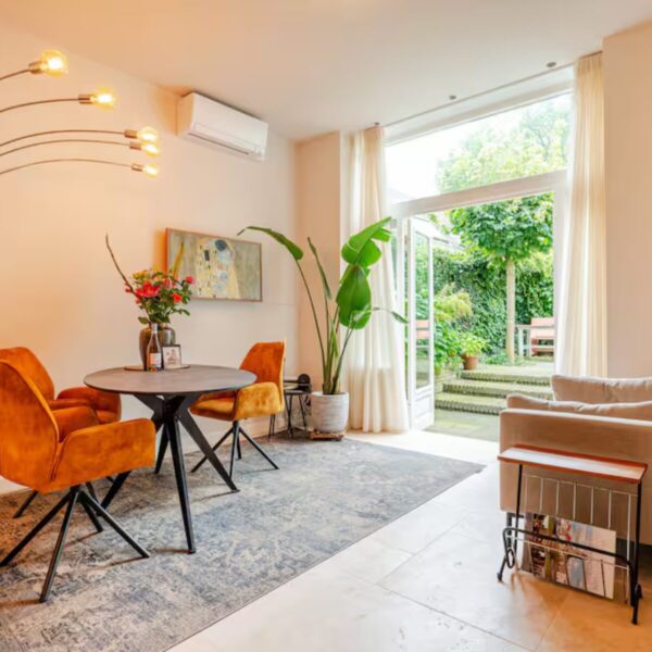 Was macht De Paap wirklich besonders? Der sonnige private Stadtgarten. Eine Seltenheit im Stadtzentrum und ein wunderbarer Ort für deine erste Tasse Kaffee oder einen Nachmittagsdrink. Stell dein (Elektro-)Fahrrad sicher und trocken in der Gemeinschaftsgarage mit Ladestation ab – ideal für alle, die viel unterwegs sind. Du hast dein Fahrrad nicht dabei? Im De Paap kannst du eins ausleihen. Und brauchst du Tipps für deinen Aufenthalt? Deine Gastgeber werden sich gerne bemühen, dass du dich wohl fühlst und dir die besten Adressen der Stadt zeigen. Willst du draußen frühstücken? An der Ecke ist 30ML, mit gutem Kaffee und Croissants, Pfannkuchen…. Ein nettes Lokal zum Abendessen? Das Restaurant Bouwkunde befindet sich an der anderen Straßenecke.