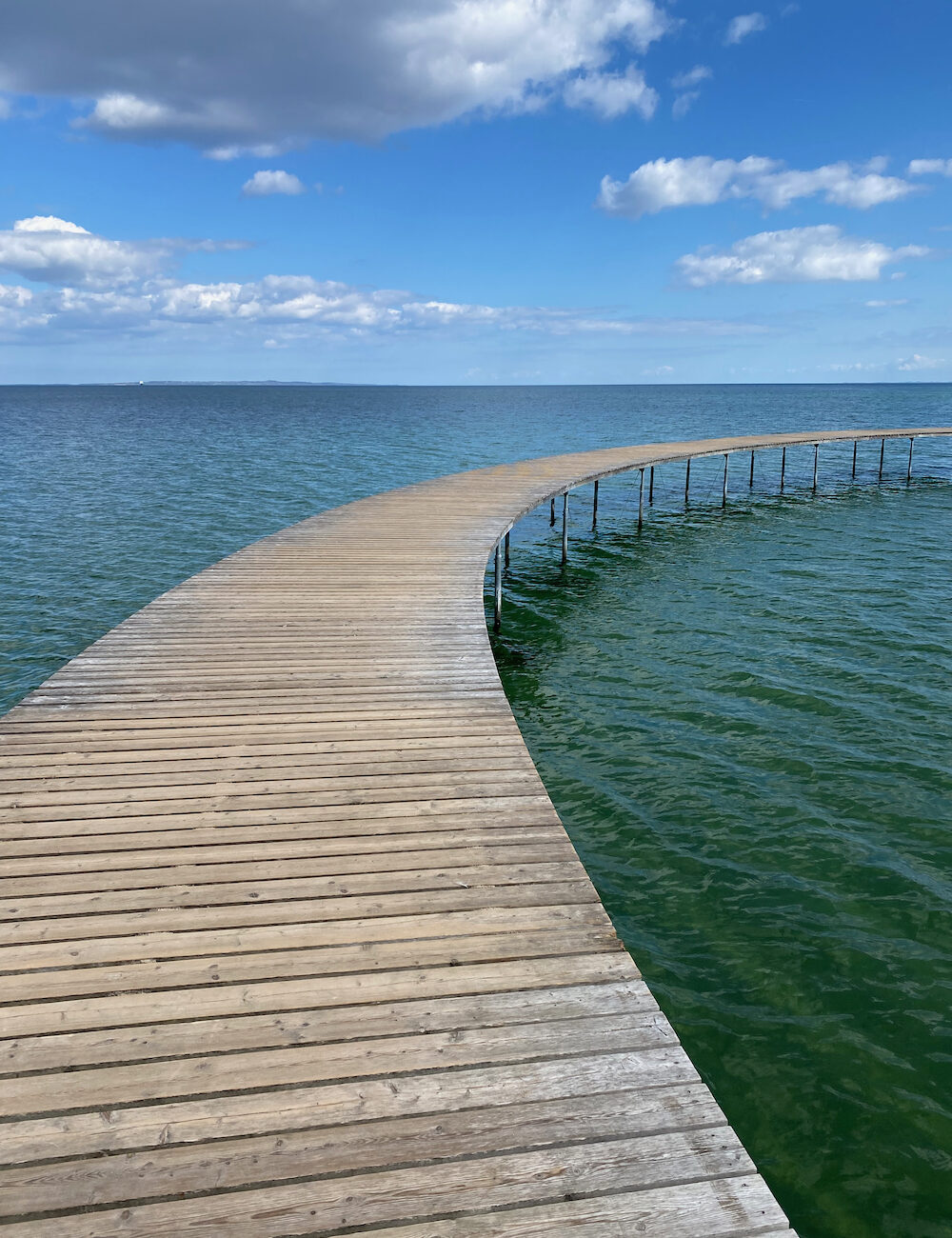 - Ein weiterer besonderer Ort am Meer liegt etwas südlich von Aarhus: Den uendelige bro. Ein Steg am Meer ohne Anfang und Ende. Achte auf das klare Wasser in allen Blautönen.