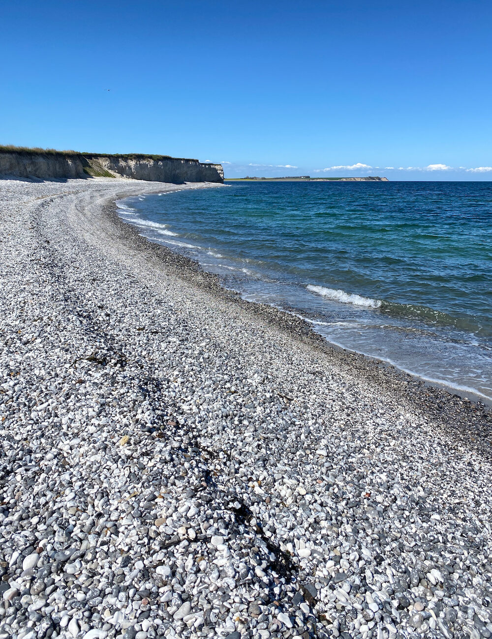 Der Vorteil gegenüber Møn ist, dass du hier keine endlosen Treppen hinuntersteigen (oder hinaufsteigen) musst, um sie zu erreichen. Auch mit kleinen Kindern ist ein Spaziergang also gut machbar. Halte bei Sangstrup Klint an der Ostküste Ausschau nach Sandsteinstücken mit Fossilien von winzigen Seeigeln.