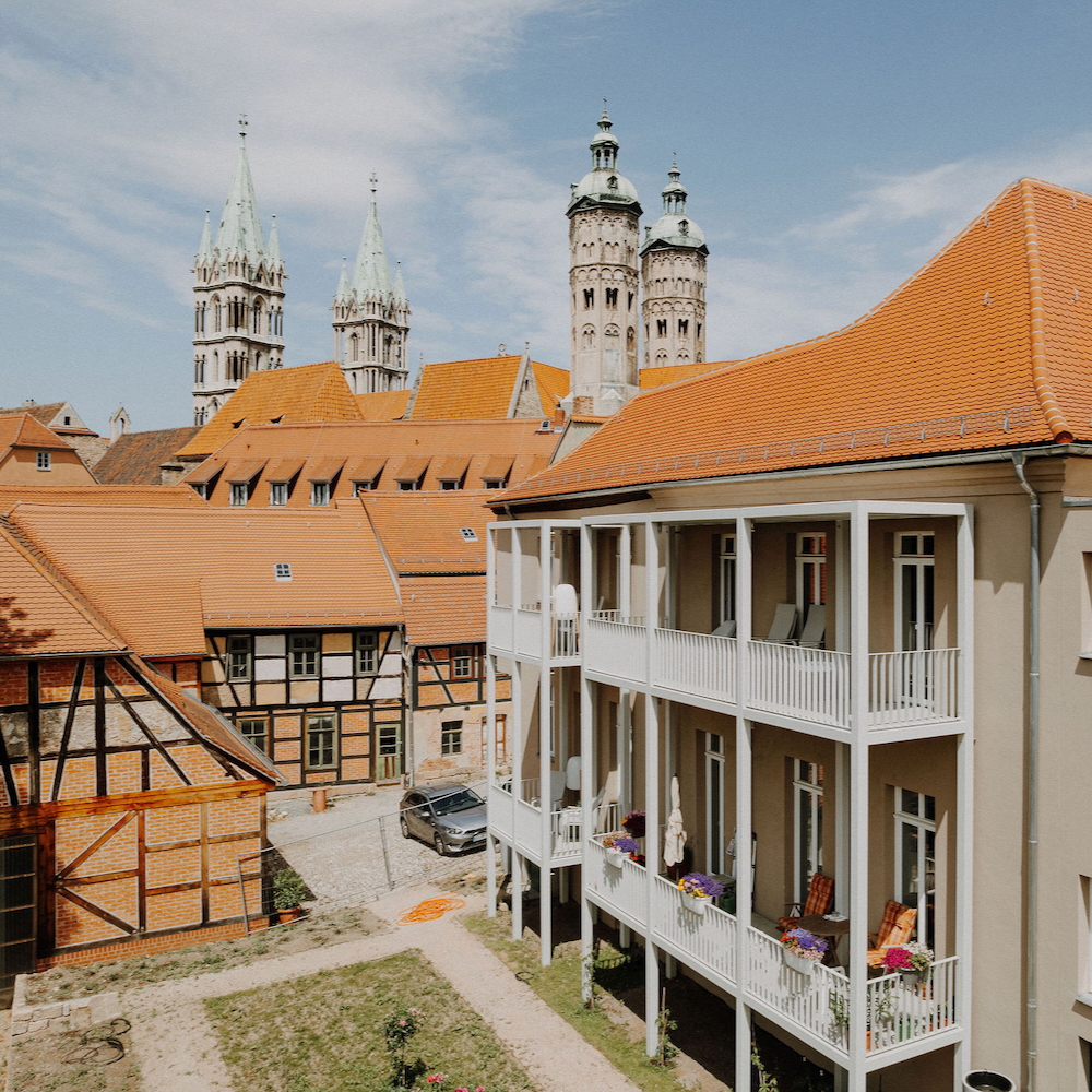 Direkt neben dem berühmten Naumburger Dom (UNESCO-Weltkulturerbe) findest du zehn individuell eingerichtete Wohnungen, die mehr sind als nur ein Platz zum Schlafen. In der Domfreyheit in Naumburg übernachtest du nicht nur, hier erlebst und genießt du die Kombination aus Design, Wein, Architektur und Geschichte. Ob du zu zweit, mit der Familie oder mit Freunden kommst, die Domfreyheit bietet einen wunderbaren Ort für ein paar unvergessliche Tage in der Saale-Unstrut (Wein)-Region.