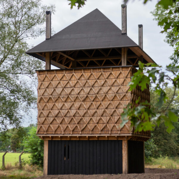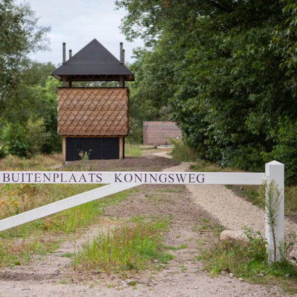 Folly de Hooimijt ist eines der einzigartig gestalteten Ferienhäuser am Buitenplaats Koningsweg, in den Wäldern bei Arnheim. Der Buitenplaats ist ein Landgut mit einer turbulenten Geschichte. Während des Zweiten Weltkriegs tarnte die deutsche Luftwaffe Militärgebäude in dieser Gegend als Bauerndörfer, um nicht aus der Luft entdeckt zu werden. Heute ist der Buitenplaats Koningsweg eine Brutstätte für Kreative und beherbergt 11 ungewöhnliche Follies für Wochenendaufenthalte und Ferien. Diese Follies, kreative, verrückte und künstlerische Bauten, wurden von elf verschiedenen Architekten entworfen. Jeder hat sie so gestaltet, dass sie auch heute noch kaum aus dem Wald herausragen.