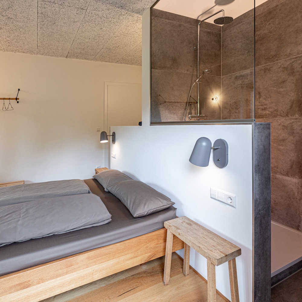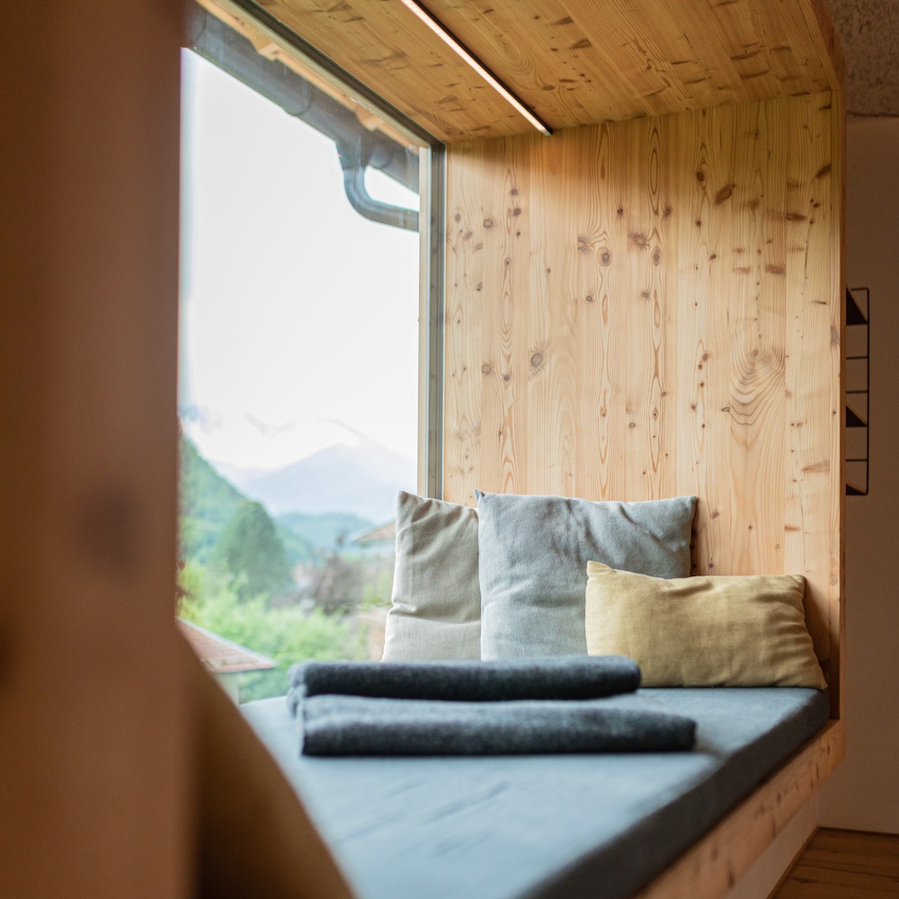 Die Besitzer, Anja und Jérome, haben viel Liebe und Leidenschaft in die Renovierung von GERN² gesteckt. Alles Wertvolle aus dem Haus von 1860 wurde restauriert und wiederverwendet. Holzböden und alte Türen wurden mit modernem Design kombiniert und schaffen so eine warme Atmosphäre. Die Wohnungen sind mit hochwertigen Materialien ausgestattet, die für ein gesundes Raumklima sorgen. Sieh selbst, wie schön die Lärchenholzfenster sind! Perfekte Plätze, um nach draußen zu schauen oder dich mit einem Buch in die eigene Ecke zurückzuziehen.