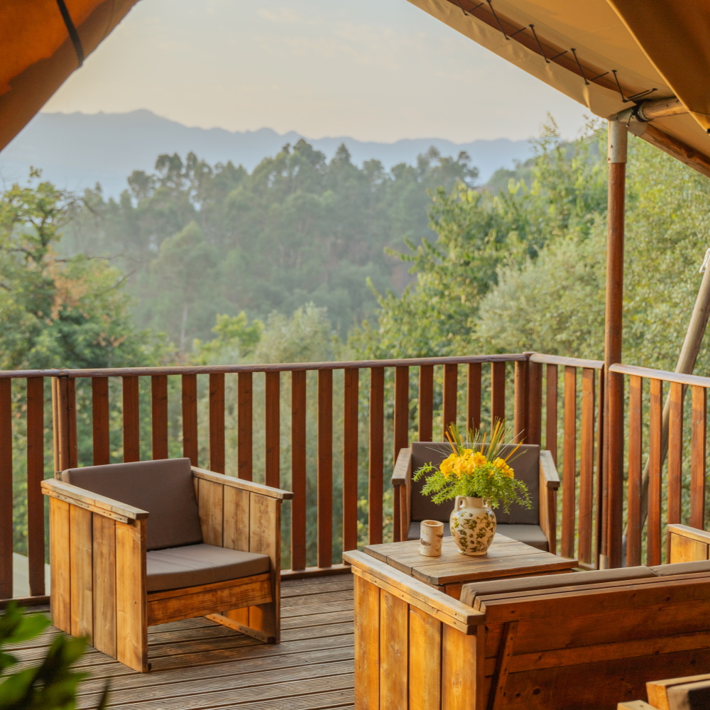 Neben dem komfortablen Ferienhaus verfügt Casa Fontelheira auch über acht komfortable Safarizelte, die jeweils für 5 oder 6 Personen geeignet sind. Camping im Luxus! Jedes Zelt hat seinen eigenen Charme. Was sie eint, ist die Privatsphäre, ein eigenes Bad mit Hammam-Regendusche, stimmungsvolles Landhausdekor, Liegestühle und eine Veranda. Die Kinder schlafen im Kastenbett, im eigenen Schlafzimmer und in warmen Sommernächten vielleicht auf der Veranda unter dem Sternenhimmel. Auch im Frühling und Herbst wirst du dich hier wohlfühlen: die Pelletöfen sorgen nicht nur für Gemütlichkeit, sondern auch für Wärme. Perfekt für einen Urlaub in Portugal!