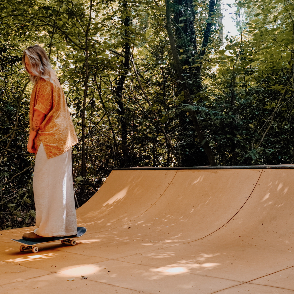 Vor dem Haus liegt eine große Terrasse mit Esstisch und einem Außenpool – ein Pool auf Beinen mit warmem Wasser. Wie cool ist das. Im Garten, einem privaten Wald von 2.510 m², findest du außerdem ein Trampolin und eine Feuerstelle. Und ganz sicher wird die Skatebahn Jung und Alt begeistern. Gemeinsam trainieren, ausprobieren, Grenzen verschieben – mitten im Wald.