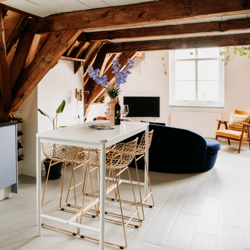 Dieser Neuzugang, die Wohnung BIG Gem für vier Personen, befindet sich an einem anderen Ort, noch zentraler in der Stadt, neben dem Lange Jan. Aber keine Sorge, drinnen wirst du dich richtig entspannen. Auch hier haben Emilie und Jochem eine Einrichtung geschaffen, um die man sie beneiden kann. Die warmen Farben, die Verwendung von Holz, die schönen Accessoires, das luxuriöse Badezimmer und die moderne Küche mit Kochinsel – alles ist gleichermaßen schön. Die Wohnung hat zwei Schlafzimmer, wovon eines eine freistehende Badewanne hat. Ideal auch für ein Freundinnen-Wochenende! Gemeinsam auf die Terrasse gehen, einkaufen, einen Stadt- oder Strandspaziergang machen und abends zu Hause einen Drink nehmen.