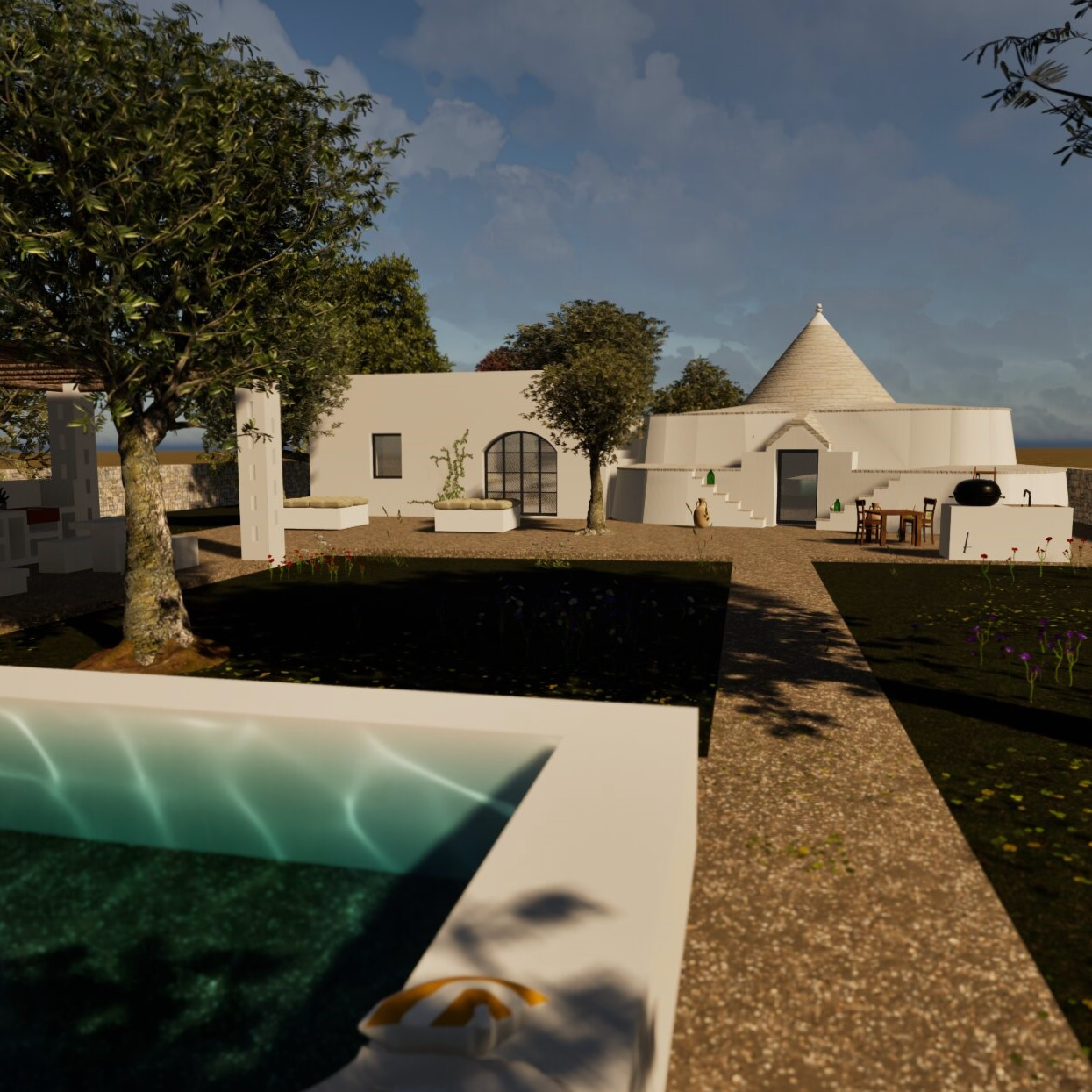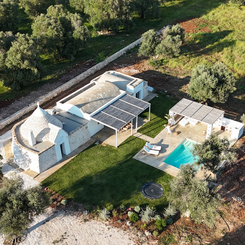 ‚La Favola Bianca‘ bedeutet ‚das weiße Märchen‘. Ein allumfassender Name für diesen geschmackvoll umgebauten Trullo. Durch die Einbeziehung des Trullo in die Gestaltung der Ferienvilla wurde ein Gleichgewicht zwischen Authentizität, Reinheit und dem Komfort und Charakter von heute geschaffen. La Favola Bianca bietet Platz für 4 (+1) Personen. Das Haus verfügt über zwei Schlafzimmer, jedes mit eigenem Bad. Das große Wohnzimmer verfügt nicht nur über eine Sitzecke, sondern auch über eine voll ausgestattete Küche. Durch die Flügeltüren gelangt man automatisch nach draußen mit Blick auf das Schwimmbad, die umliegenden Olivenhaine und Obstbäume.