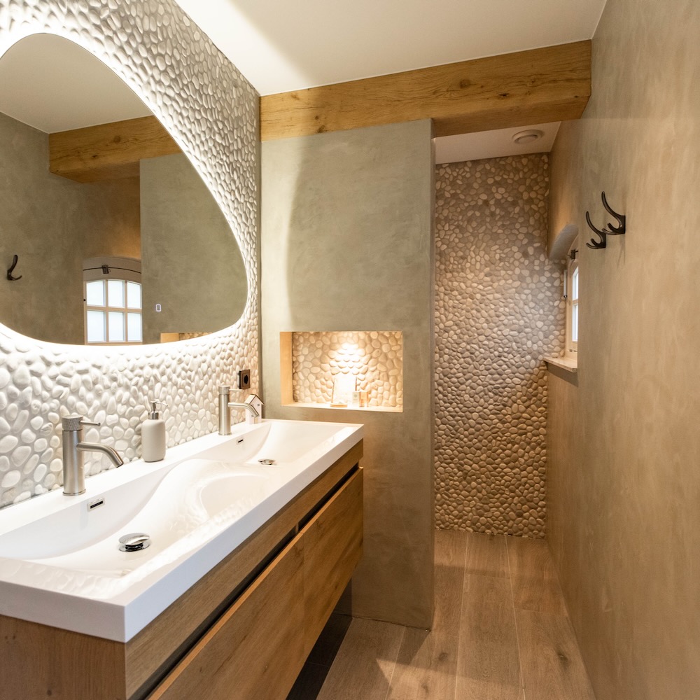 Bei Het Reekse Bos dreht sich alles um eine komfortable, nachhaltige und stimmungsvolle Unterkunft. Das Bed & Breakfast verfügt über zwei schön renovierte Unterkünfte. Obwohl der Name Bed & Breakfast etwas anderes vermuten lässt, handelt es sich bei Achterhuis 1 und Achterhuis 2 in Wirklichkeit um komplett eingerichtete Ferienhäuser. Mit ihrem ländlichen Aussehen und der Verwendung natürlicher Materialien fügen sie sich perfekt in ihre Umgebung ein. Auffallend sind die großen Fenster und die massive Eichenbalkenkonstruktion, die den Häusern zusätzliche Atmosphäre, Charakter und ein Gefühl von Luxus verleihen. Beide Unterkünfte sind modern eingerichtet und verfügen über eine voll ausgestattete Küche (mit Backofen, Nespresso-Maschine und Geschirrspüler), ein eigenes luxuriöses Bad mit begehbarer Dusche und ein Wohnzimmer mit Sitz- und Essecke. Hinterhaus 1 ist für vier Personen geeignet. Es gibt zwei Schlafzimmer, ein Hochparterre mit einem großen Doppelbett und ein separates Schlafzimmer mit zwei Einzelbetten. Hinterhaus 2 ist ein Gästehaus für zwei Personen mit dem gleichen Luxus und Komfort wie Hinterhaus 1. Vom offenen Schlafboden aus hast du durch die großen Fenster eine schöne Aussicht. Auf den Garten, den Wald und nachts auf den Sternenhimmel.