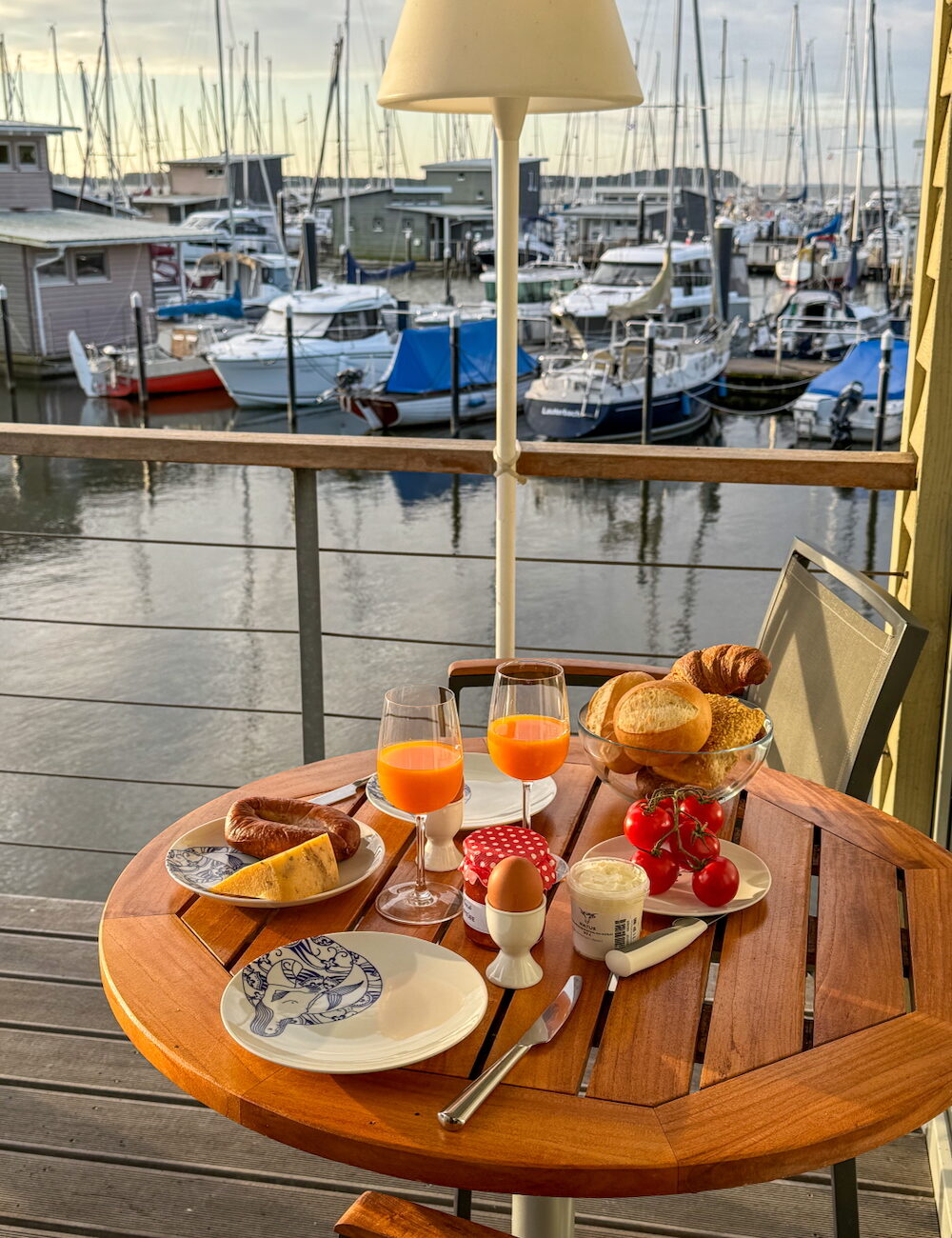Nichts geht über einen guten Stützpunkt, und den habe ich für dich gefunden: im-jaich Wasserferienwelt Rügen. Dieser Hafen befindet sich in der Stadt Lauterbach, nur einen Steinwurf von der weißen Stadt Putbus entfernt. Im und am Hafen gibt es einzigartige Unterkünfte: von romantischen Suiten auf Stelzen über schwimmende (Familien-)Ferienhäuser bis hin zu Wohnungen an Land. Jede von ihnen ist etwas Besonderes. Wenn du mit deinem Partner kommst, ist ein Aufenthalt in einer der Pfahlhaussuiten (Suite auf Stelzen) ein unvergessliches Erlebnis. Der Blick auf die Boote im Hafen und die Greifswalder Bucht ändert sich jeden Moment des Tages. Früh aufzustehen, um den Sonnenaufgang zu bewundern, ist ein Muss. Ein erfrischendes Bad im Meer ist von deiner eigenen Terrasse aus möglich.