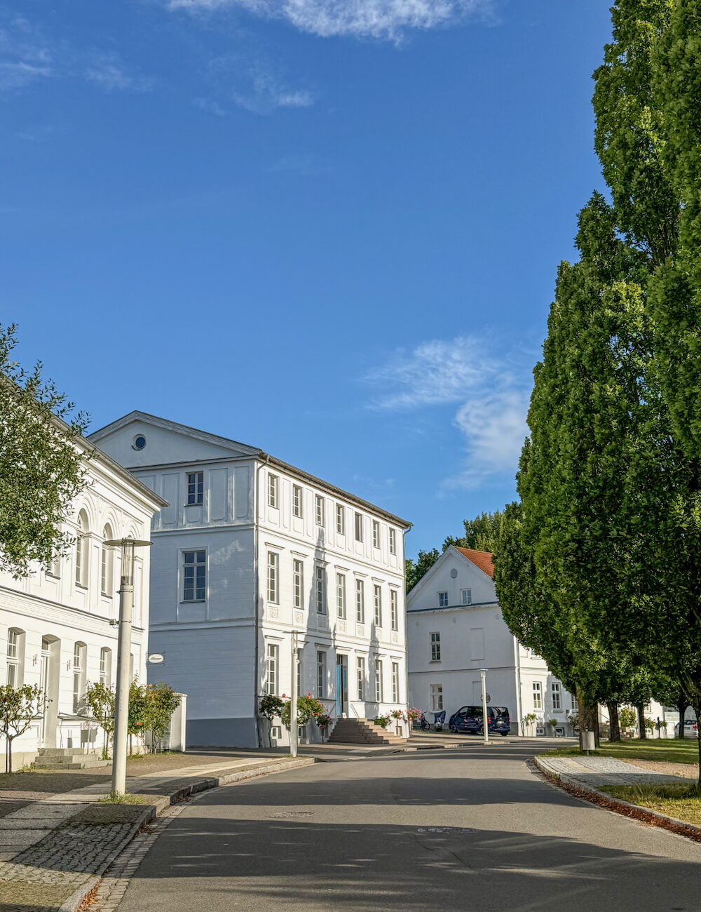 Putbus ist auch als die Weiße Stadt oder Rosenstadt bekannt. Rund um den zentralen Circus (ein runder Platz mit einem Obelisken in der Mitte) stehen stattliche weiße Häuser, die zusammen eine fast königliche Atmosphäre ausstrahlen. Lange Alleen mit jahrhundertealten Buchen führen dich in den Schlosspark, der zu einem Spaziergang und einem Besuch der Kunstgalerie in der Orangerie einlädt. Am Rande des Parks befindet sich das Rosencafé & Konditorei Putbus, das zu einem Zwischenstopp mit Kaffee und Kuchen einlädt.