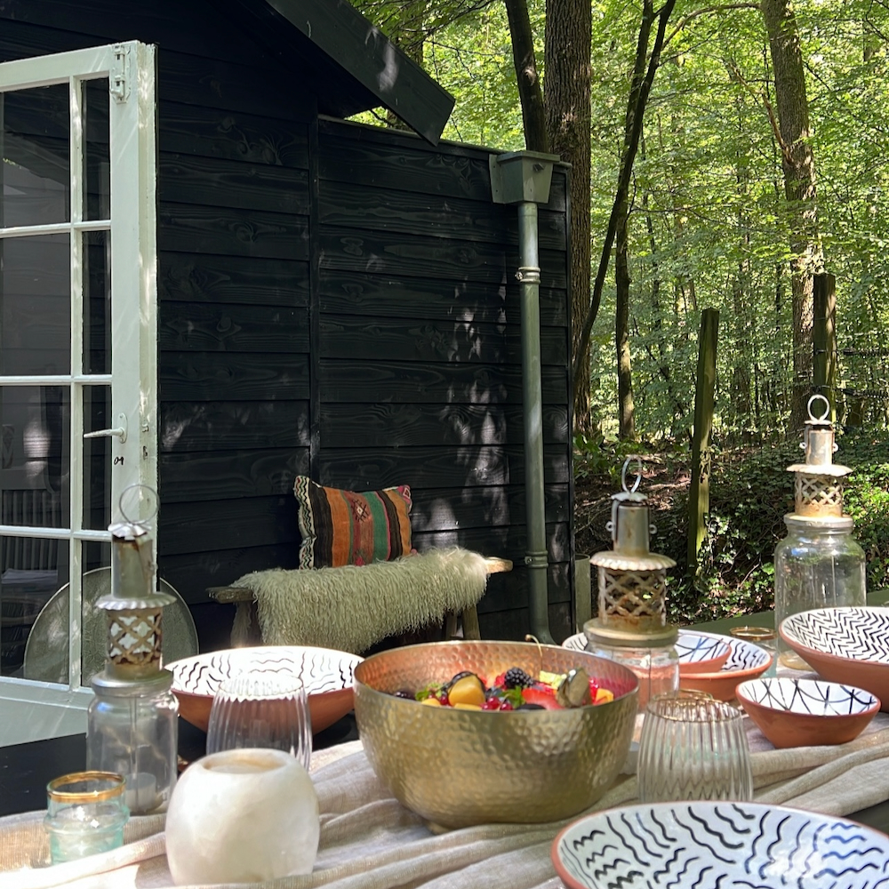 Es gibt Orte, bei denen man sich fragt, warum sie so heißen, wie sie heißen. Bei Schlafen im Wald gibt es daran keinen Zweifel. Dieses Bed & Breakfast liegt wirklich mitten im Wald. Wenn Sie aus Apeldoorn herausfahren, geht die asphaltierte Straße nach dem wilden Gitter in einen Waldweg über. Dieser ist nur für den örtlichen Verkehr und ausnahmsweise auch für Sie zugänglich. Nach ein paar Kilometern taucht ein ehemaliges Forsthaus mit einem gemütlichen Holzhaus auf dem Gelände am Waldweg auf: Schlafen im Wald. Das B&B hat den Komfort einer Hütte. Hell, sonnig, heiter, strahlend und so schön! Die vielen Fenster machen Sie eins mit der Natur. Ein Teil des Daches des Wohnzimmers ist aus Glas, Sie haben einen himmlischen Blick über die Baumkronen bis zu den Wolken.