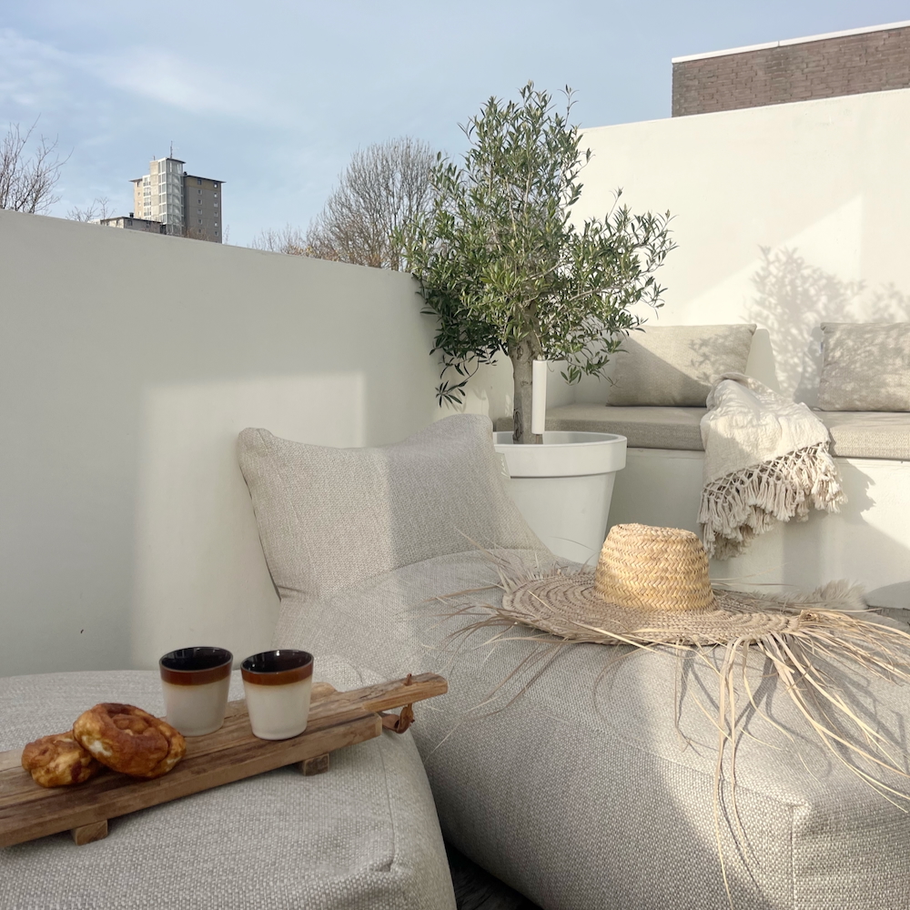 Die beiden Suiten mit den schönen Namen Es Vedra (die berühmte Felseninsel bei Ibiza) und Vadella (eine Bucht auf Ibiza) haben ebenfalls eine eigene Küche. Als luxuriöses Extra verfügen beide Suiten über eine freistehende Badewanne und eine Sauna! Die Suite Es Vedra verfügt außerdem über eine Dachterrasse. Die Atmosphäre in allen Suiten ist die gleiche: mediterran, ein bisschen Ibiza mit Boho-Chic. Der Name sfeerhuis aan zee ist hier also durchaus angebracht. Inspiration garantiert!