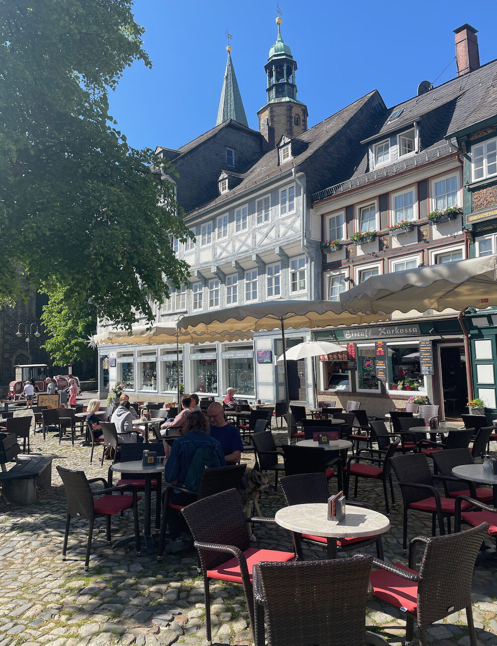 Stieß mit einem leckeren lokalen Gosse-Bier im Brauhaus auf das Leben an und mach’s dir auf dem Marktplatz im (wie passend) Café am Markt gemütlich. Das ist der perfekte Ort, um das Alltagsleben in Goslar zu beobachten. Während wir hier bei einem Glas Weißwein und Flammkuchen mit Spargel sitzen, fallen mir die Worte „freundlich”, „frisch” und „vintage” ein. Diese Worte stehen nicht nur für dieses Café auf dem Marktplatz, sondern eigentlich für ganz Goslar. Erwarte hier keine hippen Läden und schicken Restaurants. Goslar ist eine zufriedene Stadt, genau richtig, wie sie ist, und allein deshalb schon einen Besuch wert!
