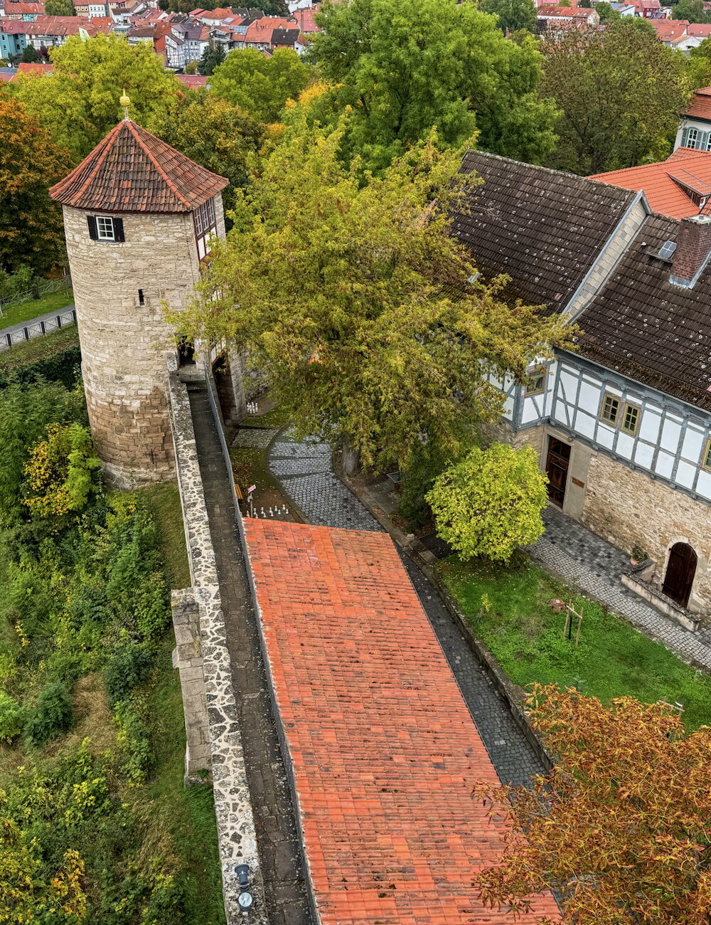 Die fast vollständig erhaltene 2,2 Kilometer lange Stadtmauer und die Marienkirche mit dem höchsten Kirchturm Thüringens sind zwei der wichtigsten Highlights der Stadt. Einen Spaziergang entlang der Stadtmauer solltest du dir daher nicht entgehen lassen. Neben dem Frauentor befindet sich der Rabenturm, der Ausgangspunkt für deinen Spaziergang auf der Mauer. Steige auf den Turm und blicke über die orangefarbenen Dächer der mittelalterlichen Stadt und ihrer Umgebung. Setze deinen Weg entlang der Mauer fort, von der noch 330 Meter begehbar sind. Du wirst an fotogenen Türmen vorbeikommen, die alle unterschiedlich dekoriert sind. Zu den Attraktionen gehören wechselnde Ausstellungen, ein Museum, ein bisschen Stadtgeschichte und die Rolle der Feuerwehr.