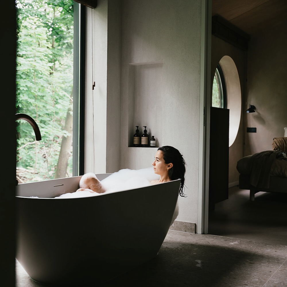 Nur drei Hütten stehen im Wald: Oak House (5-Bett), Willow House (2-Bett) und Pine House (4-Bett). Jede Hütte ist ein Unikat, wobei Leonne und Sander großen Einfluss auf das Endergebnis hatten. Auch die Inneneinrichtung ist von Leonne entworfen worden. Obwohl jedes Haus anders ist, werden Sie Ruhe erleben, sobald Sie das Haus betreten. Das Design mit seinem Schwerpunkt auf natürlichen Farben und reichen Materialien schafft eine ruhige Atmosphäre. Dazu tragen auch die großen Fenster mit Blick auf die Natur bei.