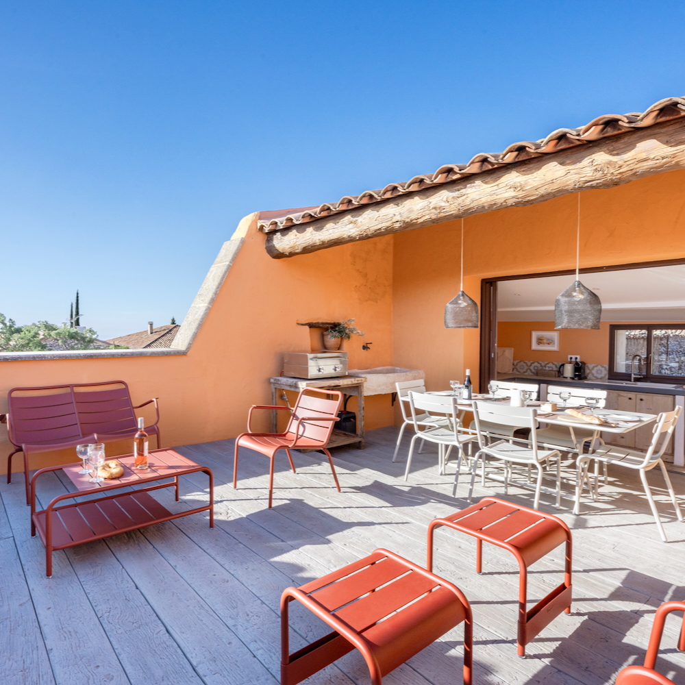 Chez Marius von Vacances de Charme ist ein luxuriöses Dorfhaus voller Charme. Das Haus liegt an der Südseite des Mont Ventoux in Les Baux-de-Bedoin, 800 Meter von der Route zum Gipfel entfernt. Wo sich vor über hundertfünfzig Jahren eine Bäckerei befand (der alte Ofen ist noch erhalten!), findest du heute ein komfortables und vor allem sehr gemütliches zweistöckiges Ferienhaus. Ein perfektes Haus, wenn du mit mehreren Paaren Urlaub machen willst, wenn du eine große Familie hast oder die Großeltern mit in den Urlaub nehmen möchtest. Es gibt drei geräumige Suiten mit eigenen Bädern. Zwei von ihnen haben eine eigene Terrasse. Entdecke alle Überraschungen im Haus: vom Innenhof mit kleinem (beheiztem) Pool bis zur Dachterrasse mit zweiter Küche. Dieses Haus hat alles und mehr! Ein privater Parkplatz, ein Abstellraum für Fahrräder, eine ach so schöne Küche, die Lust darauf macht, gleich zum Kochen auf den Markt zu gehen, Blick auf den Mont Ventoux, zwei Kamine, die das Haus zu jeder Jahreszeit gemütlich machen, eine Badewanne auf Beinen, Betten in 5*-Hotelqualität… Genau, es ist eines dieser Ferienhäuser, bei denen du bei deiner Ankunft sofort denkst: „Hätte ich doch nur länger gebucht“.