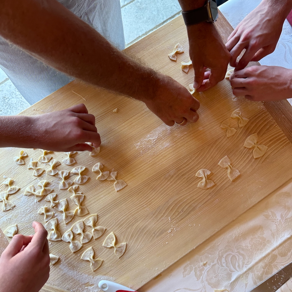 Ein besonderer Teil des Aufenthalts ist das Restaurant, das ausschließlich für Hotelgäste geöffnet ist. Hier wird nach der 0-Kilometer-Philosophie gekocht, wobei Gemüse, Kräuter und Olivenöl aus dem hoteleigenen Garten und der unmittelbaren Umgebung verwendet werden. Abends sitzt du bei einem gemeinsamen Abendessen an einem langen Tisch, ein regelmäßiger Moment, in dem die Gäste zusammenkommen und die gemütliche Atmosphäre der Villa Rey spürbar wird. Stell dir einen solchen schwülen italienischen Sommerabend vor, einheimischen Wein, gutes Essen und Trinken, neue Begegnungen: Momente, die man nicht vergisst.