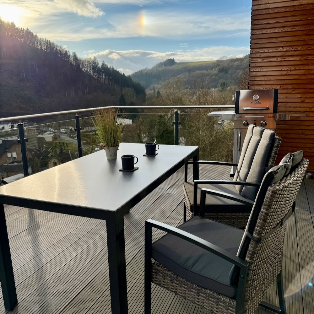 Beginne den Tag mit einem Kaffee auf deinem Balkon (Chalets) oder im Rosengarten (Fachwerkhaus). Wandere ein Stück auf dem Traumpfad, atemberaubende Aussichten garantiert, und gönne dir dann ein frühes Mittagessen in Mayen, auf einer Terrasse am Marktplatz. Lass den Tag auf deinem Balkon ausklingen. Mit einem Plaid, einem Glas Ahr-Spätburgunder und dem letzten Licht über den Hügeln zeigt sich die Eifel von ihrer besten Seite.