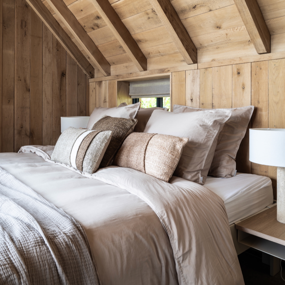 Im De Luxe Finnen wohnst du in einem freistehenden, reetgedeckten Wellness-Häuschen. Alles im Haus spiegelt eine sorgfältige Auswahl luxuriöser Materialien wider. Die Kombination aus Holz, sanften Farben und viel Licht bestimmt die warme Atmosphäre. Jedes Detail ist durchdacht und komfortabel, ohne zu übertreiben. Der Wohnraum ist geräumig und angenehm, in der Küchenzeile kochst du Kaffee und Tee oder bereitest eine einfache Mahlzeit zu. Das Doppelbett ist mit feiner Bettwäsche ausgestattet. Der Komfort setzt sich auch draußen fort. Auf der Terrasse gibt es Loungemöbel und einen Big Green Egg-Grill für lange Abende im Freien. Besonders schön ist der Privatparkplatz mit kostenloser Ladestation für ein Elektroauto. Ein kleines Detail, aber eines, das zum hohen Standard von De Luxe Finnen passt.