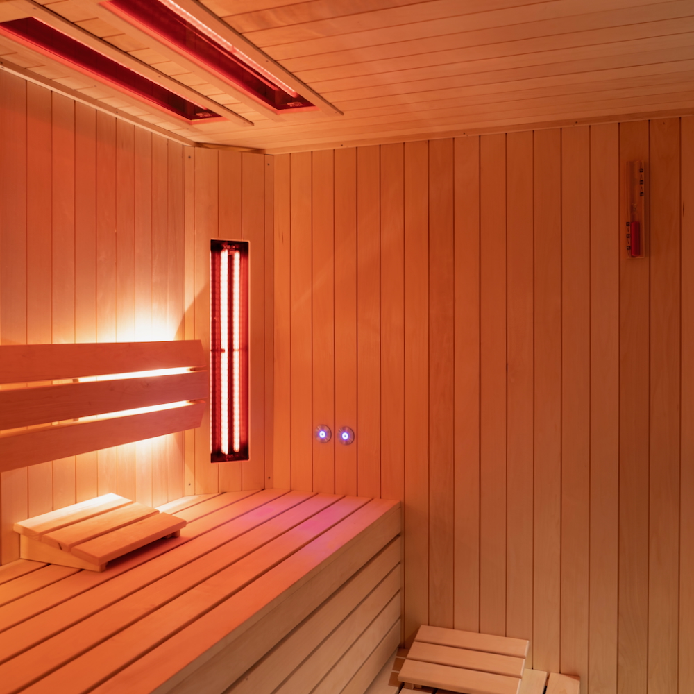 Der private Wellnessbereich macht deinen Aufenthalt im De Luxe Finnen zu etwas ganz Besonderem. Du teilst nichts und brauchst nichts zu buchen. Du hast exklusiven Zugang zu einem beheizten Hallenbad mit Schiebedach (ganzjähriges Schwimmen!), einer finnischen Sauna, einer Infrarotsauna und einem Whirlpool (immer einsatzbereit). Bademäntel warten auf dich, du gehst direkt von deinem Wohnzimmer in dein eigenes Spa, etwas, das man selten sieht. Gönne dir diesen Luxus!